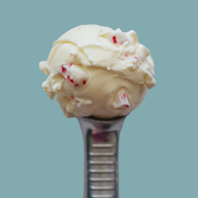 Marshmallow ice cream with chunks of homemade peppermint bark.