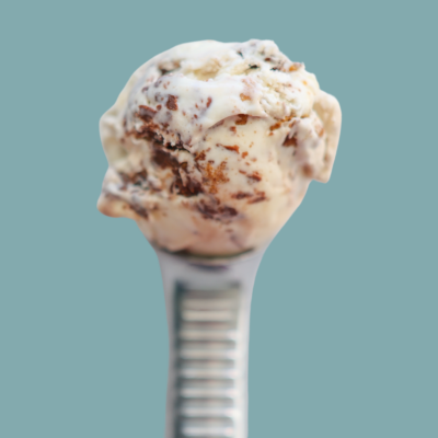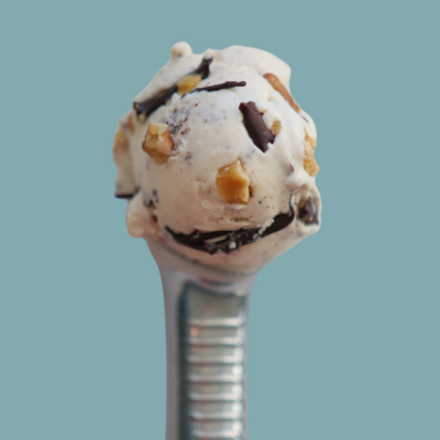 Sweet cream ice cream filled with crunchy homemade toffee pieces, a toffee lover's dream.